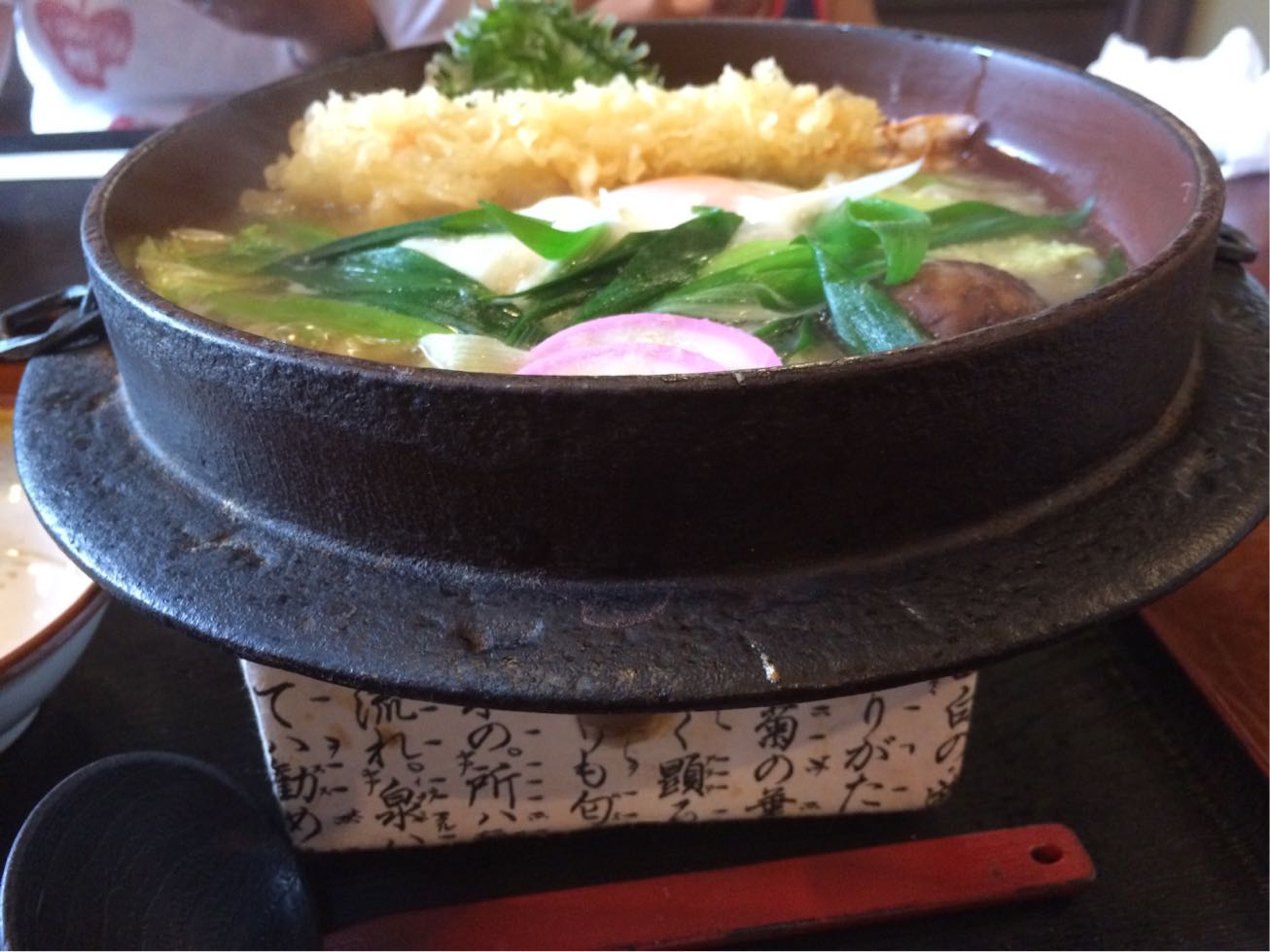 先日、鍋焼きうどんを食べました!鍋が年季の入った鉄鍋ですごかったです。