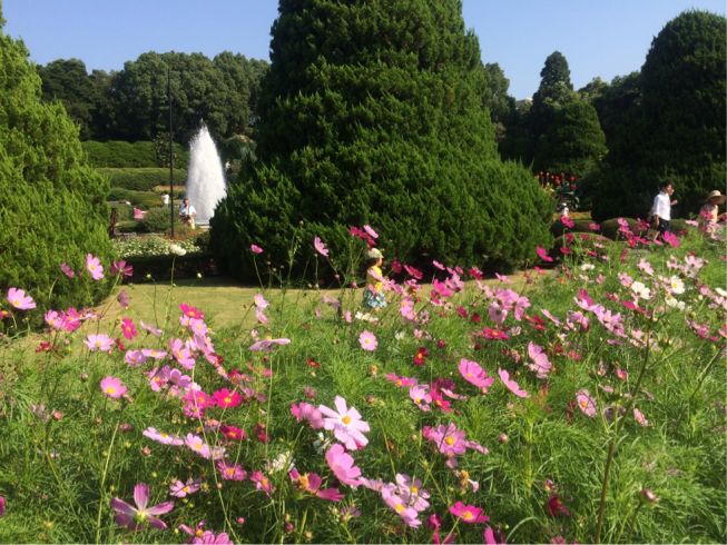 で植物園でコスモス見てどんぐり拾って帰りました。コスモスかなり綺麗に咲いてました!
