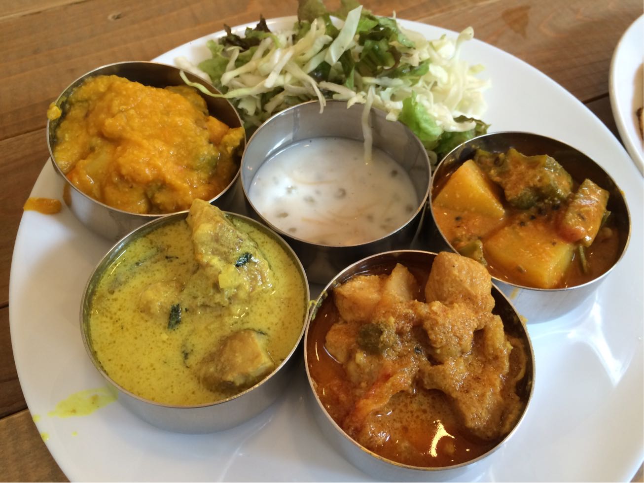 で、ココ。¥1000で昼は食べ放題!!マジか?四種のカレーはどれもスパイスが効いていて美味しかったです!!