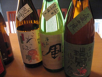 灘の酒、『仙介』。伏見の酒『蒼空』。岐阜より『小左衛門』。愛知『焚火』。佐賀『万齢』。八戸『陸奥八仙』!