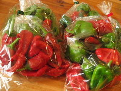 唐辛子とピーマン。色がキレイすね。