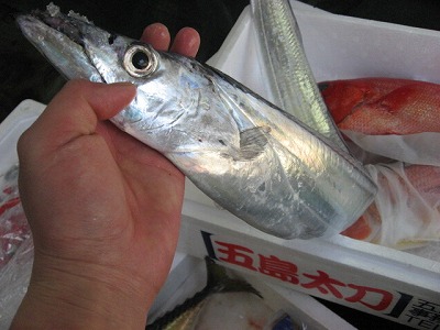 長崎五島列島産太刀魚!1キロチョイさぶいぐらい。まあまあの脂、身は締まってキレイです! 刺身、塩焼き、煮つけ、唐揚げ、なんでも。。