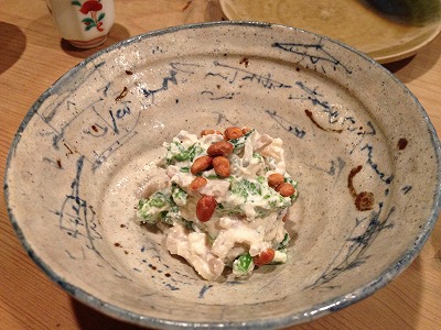 フグの皮とアンキモの和えたもの。
