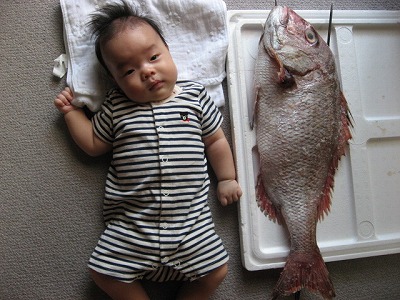 岡山産、天然真鯛3.3キロとポーズ!