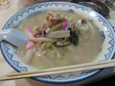 爆弾ちゃんぽんを注文!!ちゃんぽん好きです、野菜が多いのがイイ!爆弾はにんにくでした。。