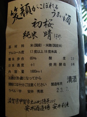 『初桜』純米生原酒です。