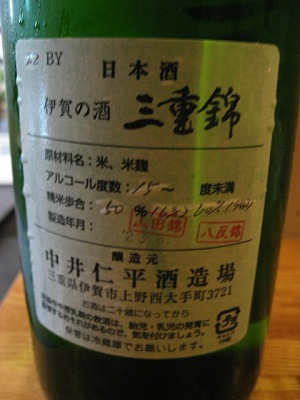 三重県伊賀の酒、『三重錦』特別純米K1401
