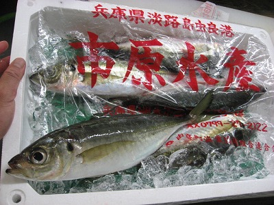 大分豊後水道、坂本鮮魚真鯛。淡路島由良港、市原水産真鯵。