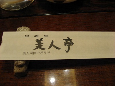 箸袋に『美人同伴でどうぞ』とあります。