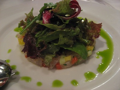 ってことで、『ビストロ ラ ポーレ』へ!!鱸のタルタル。味付けはあっさり、旨みはしっかり、ビネガーが旨い~!!